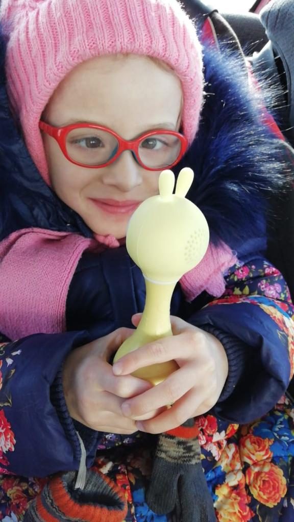 Добрый день! Мы всё получили. Вы говорили про балансир… Открываем, а там ещё такой хорошенький зайчик! Спасибо большое вам и тому человеку! Не знаю кто это… Передайте пожалуйста большое спасибо! Дети в восторге! Амина этого зайчика не выпускает из рук. На нейротрамплин ездили, так вот он очень выручает, когда нужно ждать. Амира ждём и она с ним играет. Амир тоже пробовал балансир, и шарики пробовал загонять. Даже получилось один раз. Тут и бабушка с дедушкой в восторге! Спасибо огроооомное!